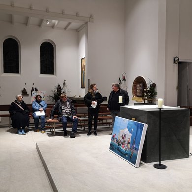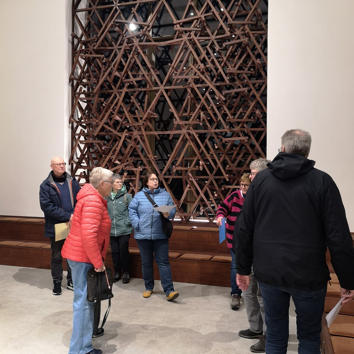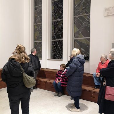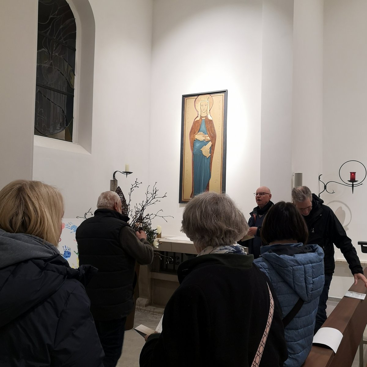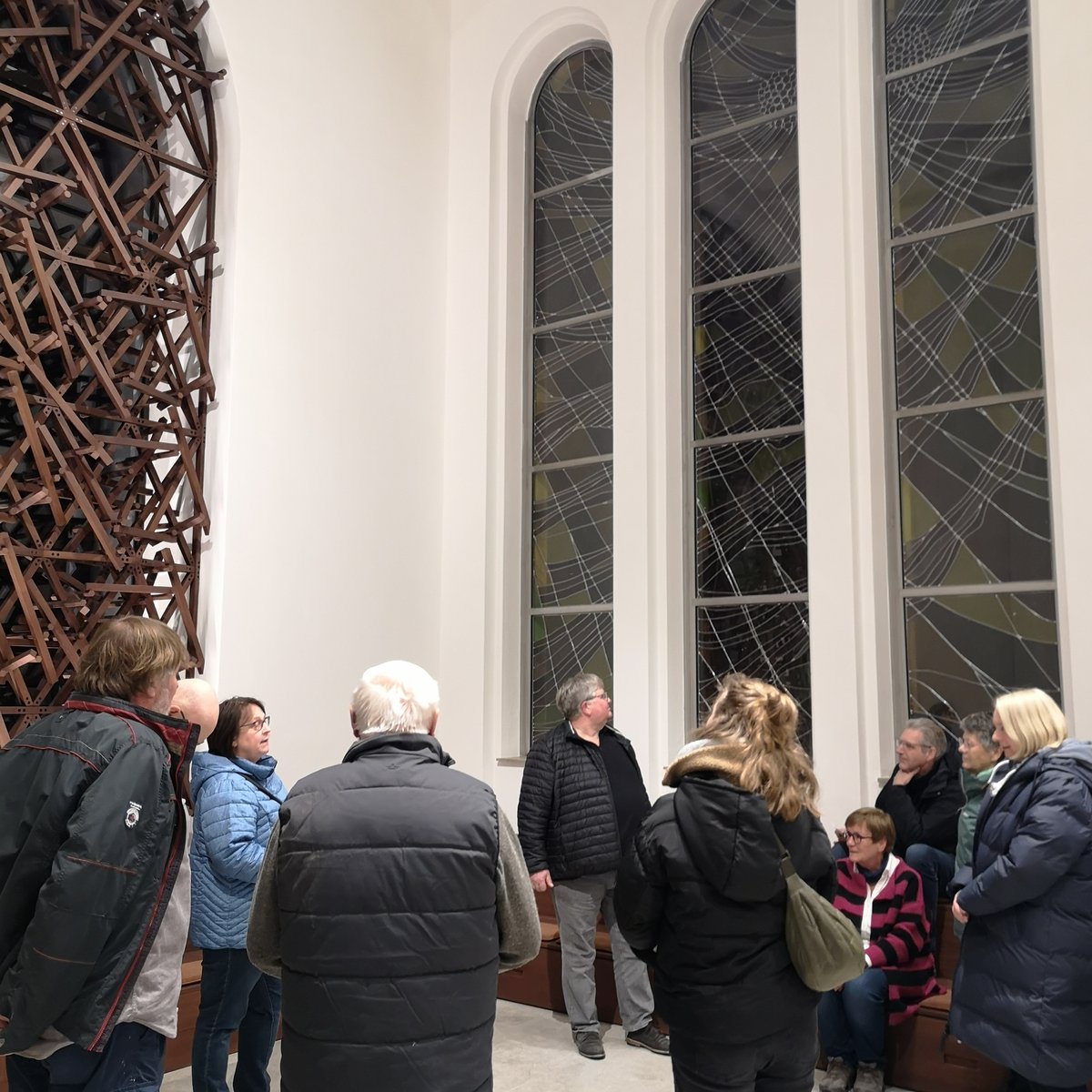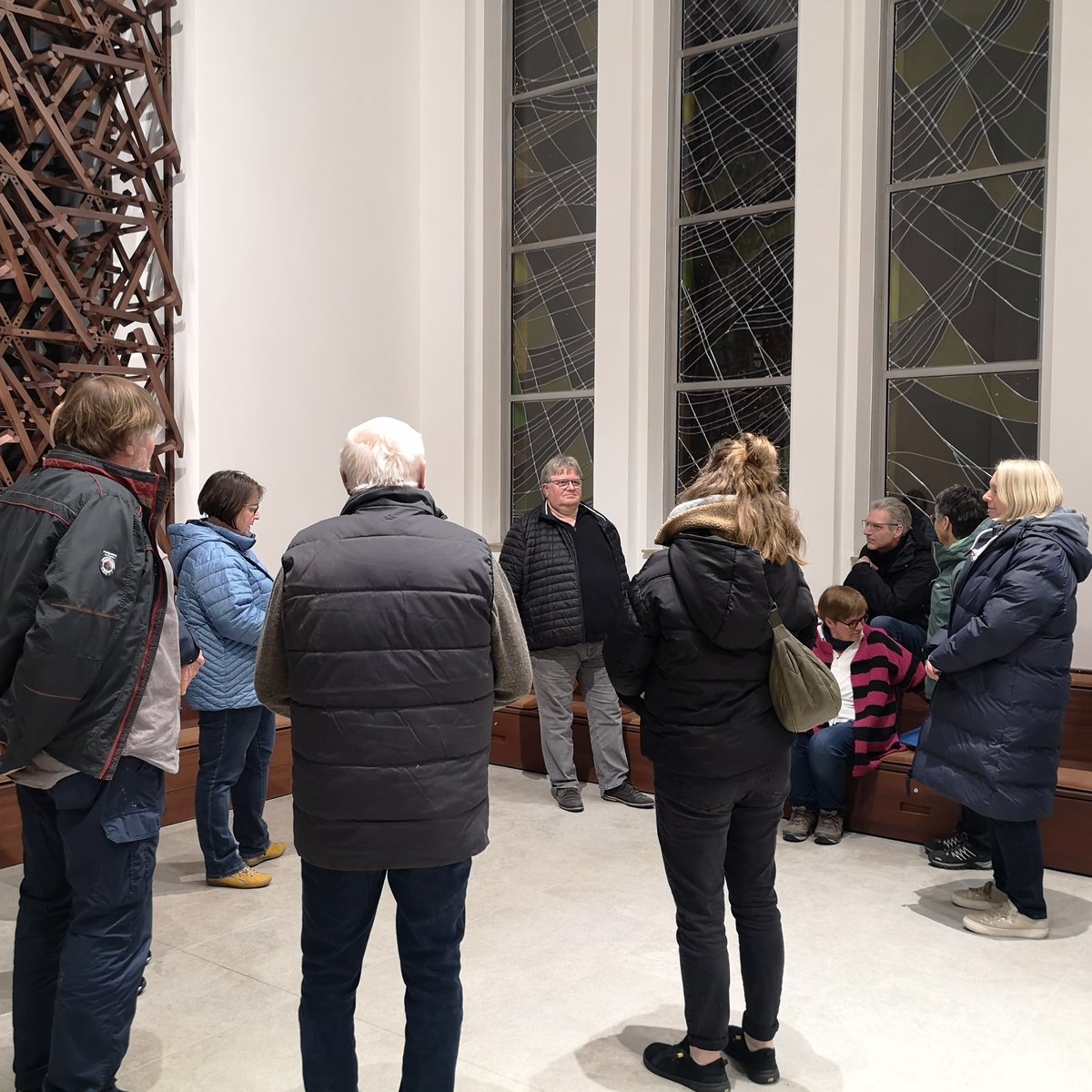 An drei Abenden machten 11 Ehrenamtlichen der Pfarreiengemeinschaft a.T.W. am Kirchstandort Bad Rothenfelde sich vertraut mit ihrer neu gestalteten Kirche. Sichtlich begeistert waren alle von dem im neuen Glanz erstrahlenden Gotteshaus. Die St. Elisabeth-Kirche direkt am Kurpark gelegen lädt Gemeindemitglieder, aber auch besonders Kurgäste zum Verweilen ein. Die ehrenamtlichen Gemeindemitglieder möchten ihre veränderte Kirche für viele offen halten und zugänglich machen. Dazu kann auch eine Kirchenführung beitragen. So haben sich die Interessierten an drei Abenden fit gemacht, um anderen die Besonderheiten und Glaubensbotschaften ihrer Kirche zu erläutern. Am ersten Abend erkundeten alle zusammen von Birgit Lemper angeleitet, die Veränderungen der Kirche zunächst einmal für sich selbst. Am Außengelände wird noch fleißig gearbeitet, innen erstrahlt die Kirche schon in einer neuen Ausrichtung. Besonders der neue Alter und das erweiterte Fenster im Chorraum geben der Kirche ein ganz neues Bild. Die Struktur des Gradierwerks wurde aus einem Teil der alten Kirchenbänke im Fenster angedeutet und der Betrachter schaut nun direkt auf den draußen angelegten Bibelgarten. Jessica Löscher vom Diözesanmuseum schulte die Teilnehmenden des kleinen Kirchenführerkurses in der Theorie des Führens. Sie erklärte wichtige Punkte, die für eine Führung wichtig sind, sowohl was den Inhalt als auch Kommunikation und Präsentation betrifft. 8 Personen meldeten sich freiwillig, um eine Besonderheit der Kirche näher zu betrachten, Informationen einzuholen und für alle zu verschriftlichen. Am 25.03.2026 war dann der Höhepunkt des Kurses. Alle 8 Teilnehmenden präsentierten sich gegenseitig einen kleinen Teil der Kirche, so erlebten wir zusammen eine wunderbare Kirchenführung. Ein paar Gäste kamen auch schon dazu. Vom Eingang angefangen gibt es in der schlichten Kirche viel zu entdecken. Wir erfuhren etwas über das Taufbecken, den Altarbereich, das neue Ambo und die Möglichkeit der Nutzung des Chorraumes. Wir lauschten zu den Ausführungen der Gestaltung des neuen Fensters und wurden ebenfalls über die vielen Aussagen der Fenster informiert. Die Farben der Fenster durchfluten tagsüber den Raum und erzählen vom Hl. Geist und nehmen die Thematik der Sakramente und Charismen auf. In jedem Fenster werden 5 Kerzen dargestellt, die die Wichtigkeit der versammelnden Gemeinde zum Ausdruck bringen möchten. Wie wichtig die Glaubenszeugnisse und der Einsatz der Ehrenamtlichen sein wird, machte der Abend deutlich. So wird unsere Kirche auf eine ganz wunderbare Weise an einer Zukunft bauen. Denn alle waren mit Begeisterung und voller Freude über die schöne neue Kirche bei der Sache. Freuen Sie sich also demnächst auf spannende Kirchenführungen in Bad Rothenfelde. Sicherlich wird es in den nächsten Monaten dazu Informationen geben, wie und wann eine Kirchenführung miterlebt werden kann.