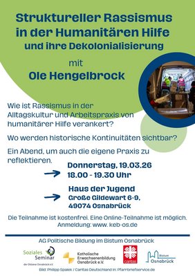 Link zur Veranstaltung: https://www.keb-os.de/p/programmbereich/politik-und-gesellschaft/soziologie/struktureller-rassismus-in-der-humanitaeren-hilfe-und-ihre-dekolonialisierung/internationale-woche-gegen-rassismus-2026-764-C-10811130